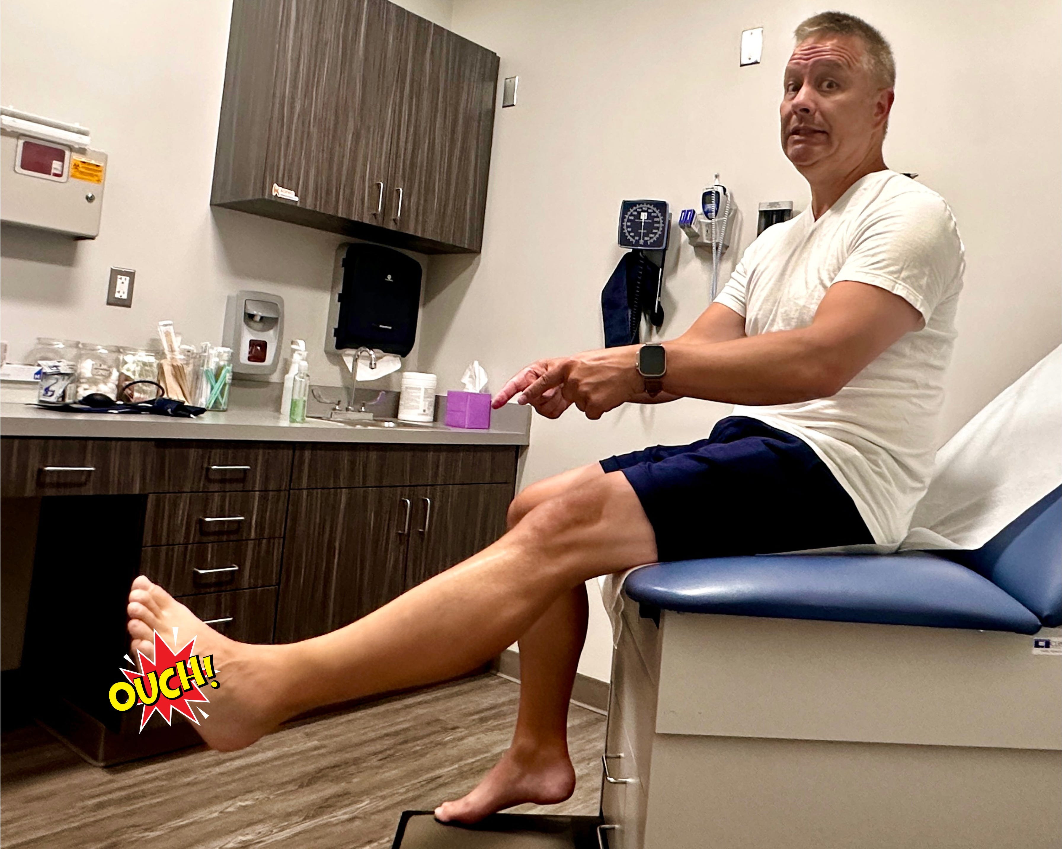 I hadn’t had an X-ray in decades. Elena sat nearby cracking jokes about amputation and how my old foot could now be my practice partner. When the scans came back: negative. Just a bad sprain on the 5th metatarsal. They fitted me with a stiff post-op shoe and told me to get a stabilizer boot.
